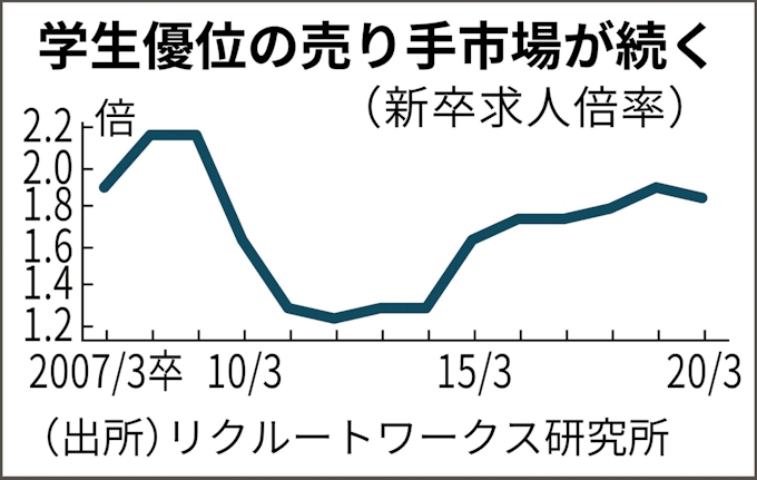 21年卒求人倍率1 53倍 0 3ポイント低下も高水準 日本経済新聞