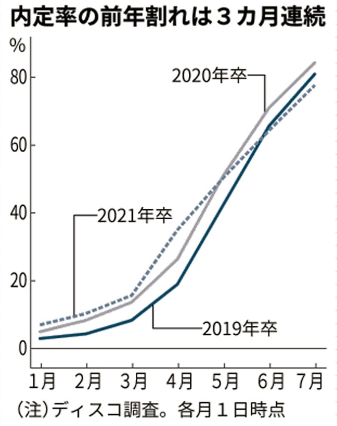 新型コロナ 7月の内定率は6 3ポイント減 コロナで選考に遅れ 日本経済新聞